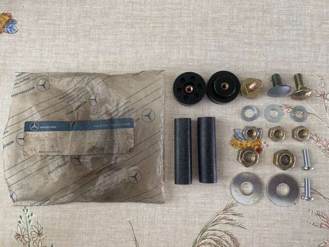 The front bumper repair kit is designed for easy restoration and replacement of damaged or worn components of a vehicle's front bumper. This comprehensive kit includes various essential parts such as bolts, nuts, washers, and support rods, which ensure a secure fit and reliable performance. Each component is crafted from durable materials, providing strength and longevity. The kit is particularly useful for automotive enthusiasts and professional mechanics who aim to maintain the integrity and appearance of the vehicle while ensuring safe operation on the road. The included components are packaged in a branded container, reflecting quality and authenticity.