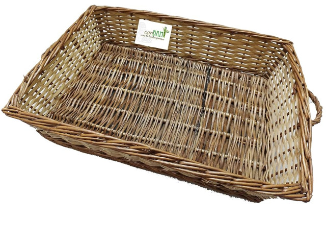 This rectangular bamboo storage basket is an elegant and functional solution for organizing your home. Made from natural, sustainable bamboo, it offers both durability and a stylish aesthetic. The basket features a spacious interior, perfect for storing a variety of items such as toys, magazines, blankets, or clothing. Its natural color gives it a warm, inviting look that blends well with any decor style. The lightweight design makes it easy to move from room to room, while the sturdy construction ensures it can hold a good amount of weight without losing its shape. Whether used in the living room, bedroom, or office, this bamboo storage basket adds a touch of nature to your space and helps keep clutter at bay.