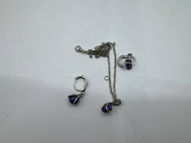 Set of 3 Silver necklace with pendant and silver earrings with blue pendant