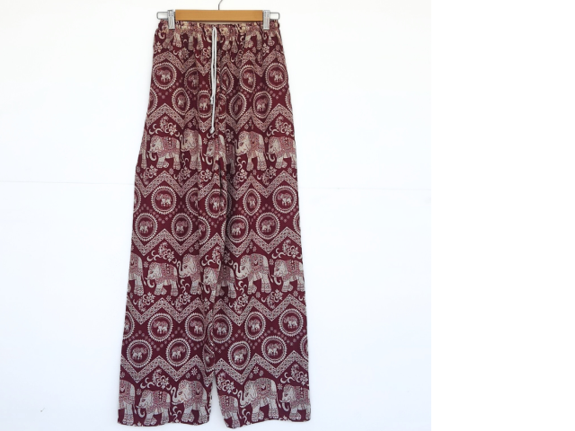 Long pants, elephant pattern, maroon color