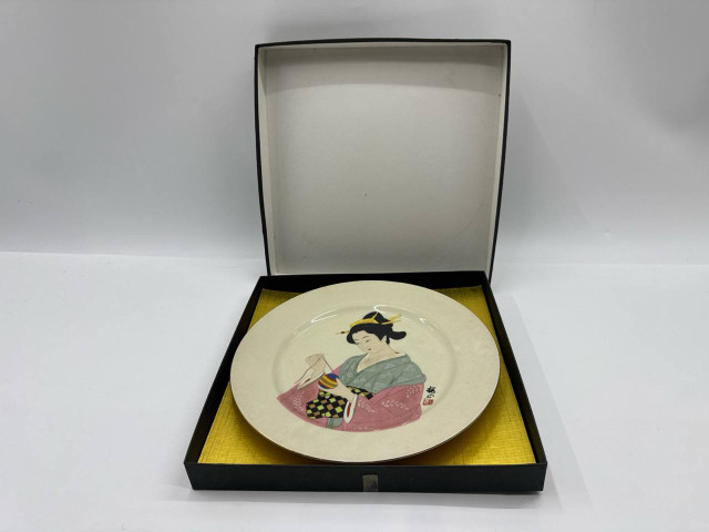 This exquisite set of two Japanese glass tea cups features a stunning blue lid and an intricate gold..