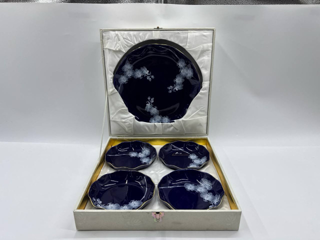 Set of 5 Glazen bord met bloemenpatroon, doosset