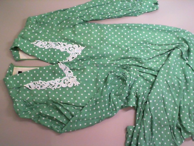 Long sleeve dress, green with white dot