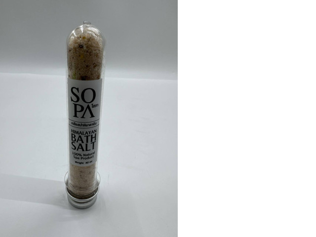 Himalayan salt is a naturally occurring mineral that is harvested from the foothills of the Himalayan mountains. This mineral-rich salt boasts a unique pinkish hue, attributed to the numerous trace minerals it contains, including magnesium, calcium, and potassium. Himalayan salt is often used in various wellness practices, particularly in bath therapies, where it dissolves in warm water to create a luxurious soak. The salt not only helps to soothe sore muscles and relax the body, but it also provides hydration and nourishment to the skin. Additionally, its natural minerals can promote a sense of well-being and tranquility, making it a popular choice for spa treatments. The presented product comes packaged in a sleek, transparent tube, allowing visibility of the coarse salt crystals inside, and is labeled as '100% Natural Spa Product' for an authentic experience.