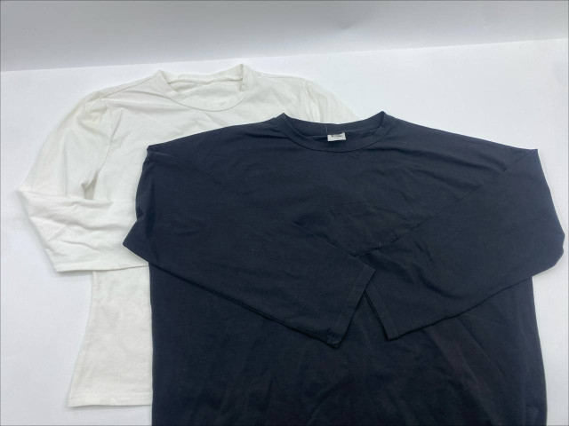 Set of 2 Black and white long-sleeved round neck T-shirt