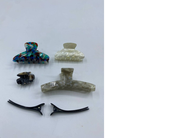 This set of 6 hair clips offers a versatile selection for both styling and practicality. The collection includes different styles, with some featuring a glossy, colorful texture, perfect for adding a vibrant touch to any hairstyle. The clips are designed for a secure hold, ideal for keeping hair in place while you go about your day. The set consists of three larger, decorative claw clips in eye-catching patterns and three smaller, sleek black clips that are great for everyday use. The variety in design makes this set suitable for both casual and formal occasions, allowing you to express your personal style effortlessly.