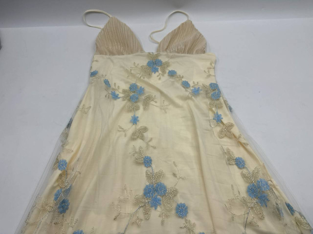 Women's cream-colored one-shoulder dress with rose pattern