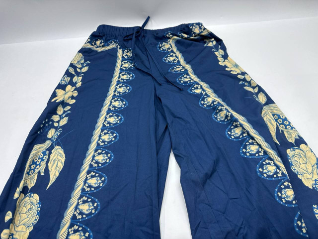 Women's blue trousers with gold pattern
