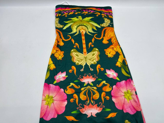This stunning women's long dress features a vibrant blue and black patterned waist with a stylish sl..