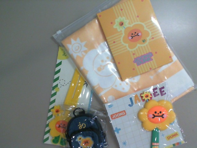 Jaidee A set of a backpack, a fabric keychain, a yellow towel, and two silicone bag keychains+notebook
