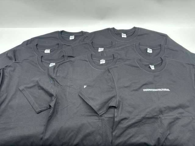 Set of 8 Black short-sleeved round neck T-shirt with white chest pattern