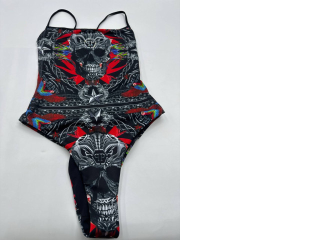 This striking red tube top is designed to make a bold fashion statement. It features an array of bea..