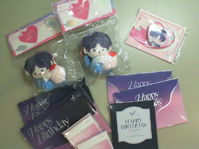 Happy Birthday set: 2 clothing badges, 6 envelopes with cards, and 1 large heart badge.