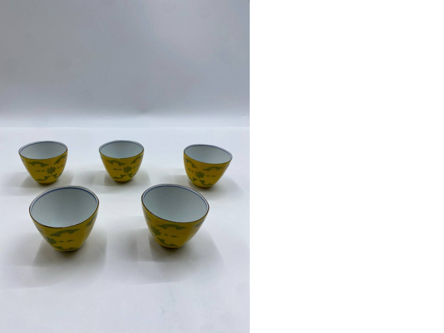 This exquisite set of 5 tall Japanese glasses is perfect for enjoying your favorite hot tea. Each glass features a vibrant yellow exterior adorned with delicate floral designs, adding a touch of elegance and charm to your tea-drinking experience. The inside of the glasses is a clean, crisp white, which not only highlights the colors of your tea but also complements the overall aesthetic. Crafted with attention to detail, these glasses are designed to withstand heat, ensuring that your tea remains warm while you sip. Ideal for traditional tea ceremonies or casual gatherings, this set is both functional and decorative, making it a wonderful addition to your kitchen or dining collection.