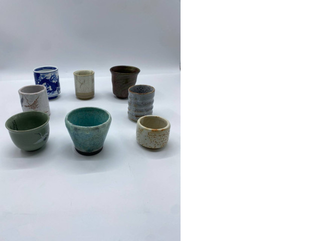 This elegant set includes four beautifully crafted Japanese glass cups and bowls, perfect for servin..