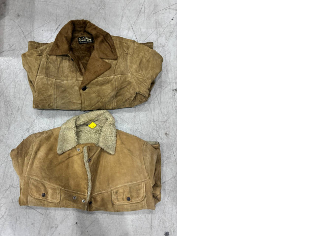 Set of 2 Vintage Suede Leather Jcpenney Sherpa Lined Mountain Western Coat Mens