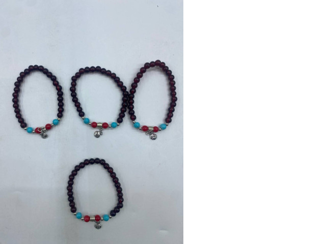 Set of 4 Dark brown beaded bracelet with gold pendant for women