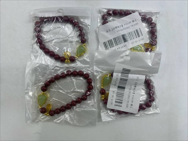 Set of 4 Dark brown beaded bracelet with gold pendant for women
