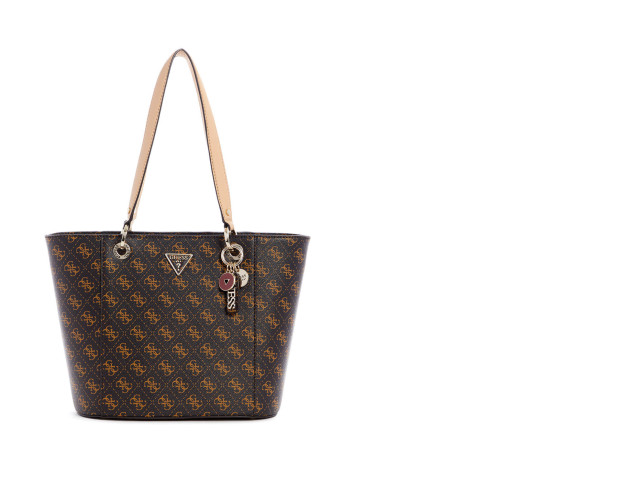 Noelle Small Elite Logo Tote Bag in Brown | GUESS Women's Handbags