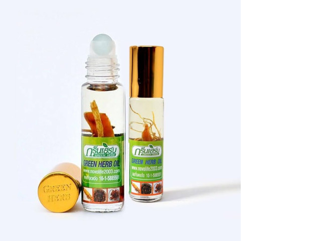 Thai green herbal oil for massage, relief of dizziness and headache, 12 pcs.