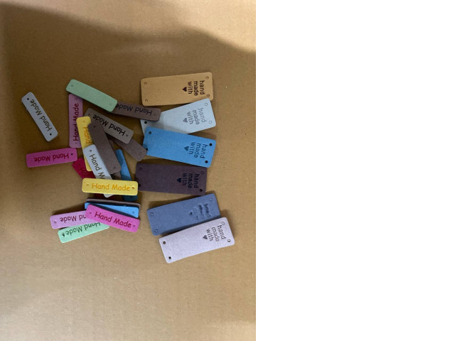 This set of clothes pads includes small fabric tags designed for enhancing garments or handmade item..