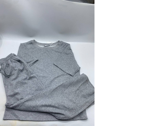 This women's gray hooded sweatshirt and gray pants set is designed for comfort and style. The sweats..