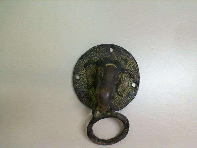 This intricately designed iron handle features the majestic figure of an elephant, serving as a stately addition to any door. The elephant's trunk flows seamlessly into the handle, a symbol of strength and wisdom. The circular base of the handle is adorned with an ornate pattern that complements the elephant's textured skin, adding a touch of elegance. The dark metal finish of the handle gives it a vintage charm, making it an ideal piece for those looking to add an antique touch to their interiors. This handle not only provides a functional grip but also serves as a conversation piece, reflecting a love for unique craftsmanship and exotic wildlife.