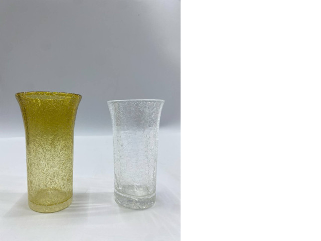 Set of 2 Ryukyu glass tumblers, featuring a distinctive crackled finish and air bubbles.