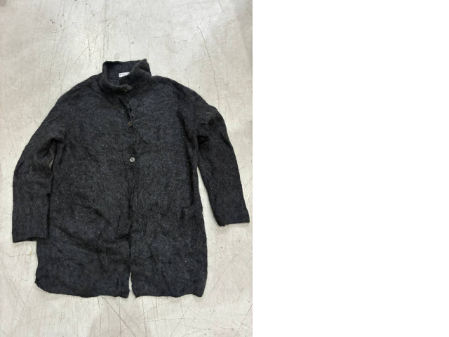 This autumn coat is designed for both warmth and style, perfect for the transitional season. It features a relaxed fit, allowing for comfortable layering over sweaters or long sleeves. The coat is made from a soft, textured wool blend, providing excellent insulation without sacrificing breathability. Its charcoal gray color adds versatility, making it easy to pair with various outfits. A simple button closure at the front adds a touch of sophistication, while the mandarin collar offers a contemporary twist. The coat has long sleeves, perfect for chilly days, and a slightly oversized silhouette for a laid-back look. Its unique texture gives it a handcrafted aesthetic, appealing to those who appreciate fashion with a rustic charm.
