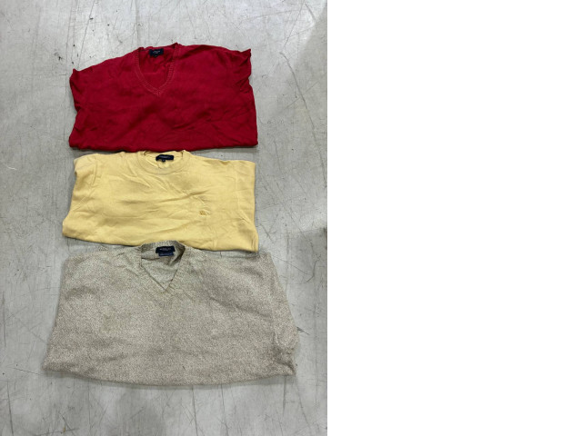 This set includes three stylish sweaters, each offering a unique color and design. The top sweater i..