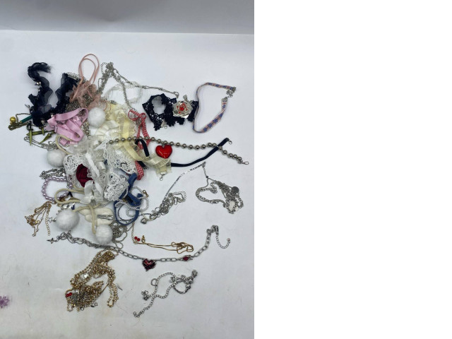 The Big Set Women's necklace features a diverse collection of necklaces, each showcasing unique styles and designs. This assortment includes various materials, such as delicate lace, colorful ribbons, and shimmering chains. The color palette ranges from soft pastels to striking reds and blacks, allowing for versatile styling options. The eclectic designs vary from simple and elegant to ornate and eye-catching, making them suitable for various occasions. Whether you're dressing up for a special event or looking for casual accessories, this big set offers something for everyone, promising to enhance your jewelry collection with both charm and character.
