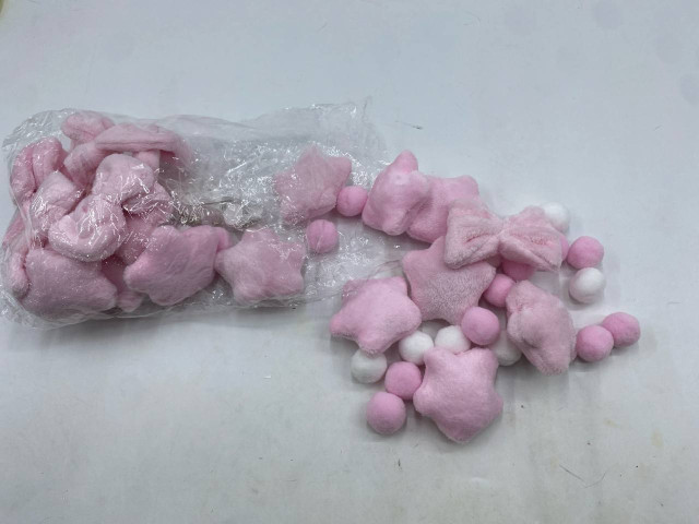 Set of pink plush star and ball beads, likely used for crafts or decoration.