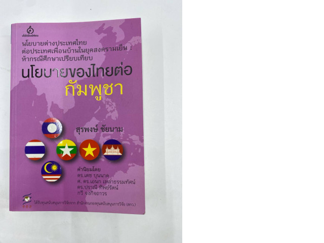 The book cover titled "Thailand's Policy Towards Cambodia" (Thai Policy Towards Cambodia) by Surapong Chaiyam discusses Thailand's foreign policy towards neighboring countries during the Cold War.