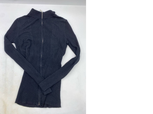 Women's black long-sleeved crew neck zip-up sweatshirt.