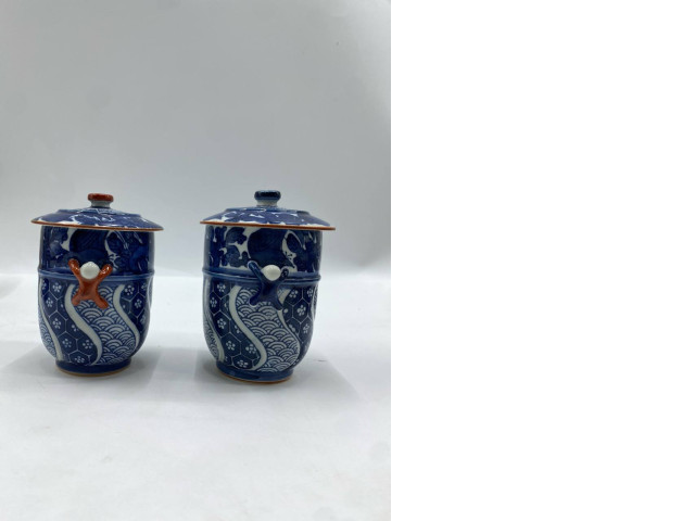 This exquisite large and tall blue teacup with white patterns is a true representation of Japanese c..