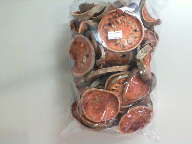 Dried Matum tea is made from the dried slices of the Bael fruit, also known as Aegle marmelos, which is native to Southeast Asia, particularly Thailand. This unique tea is characterized by its sweet, fruity aroma and a rich, amber color when brewed. The slices have a hard, woody texture on the outer edge, while the inner part is somewhat spongy, filled with a network of seeds and fibers. Matum tea is known for its numerous health benefits, including aiding digestion and boosting immunity. It is often enjoyed warm, steeped in hot water, and can be sweetened with honey or paired with other herbs for a refreshing beverage.