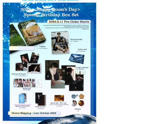 HAPPY BOOM'S DAY SPECIAL BIRTHAY BOXSET Includes: Photobook & Postcards, Stickers & Memo Pad, Keychains & Acrylic Stand, Hair Tie & Headband, Balloon Surprises.