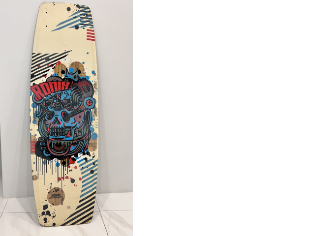 This skateboard, though not new, shows signs of a well-enjoyed life, which skate enthusiasts often a..