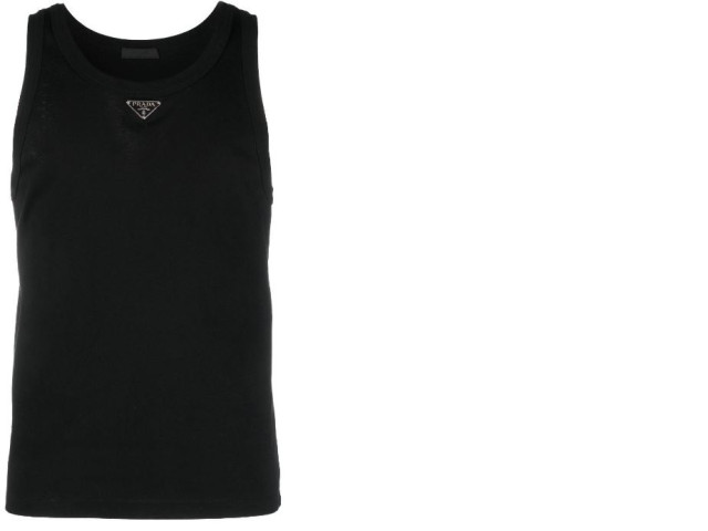 Prada Logo Plaque Tank Top in Black for Men