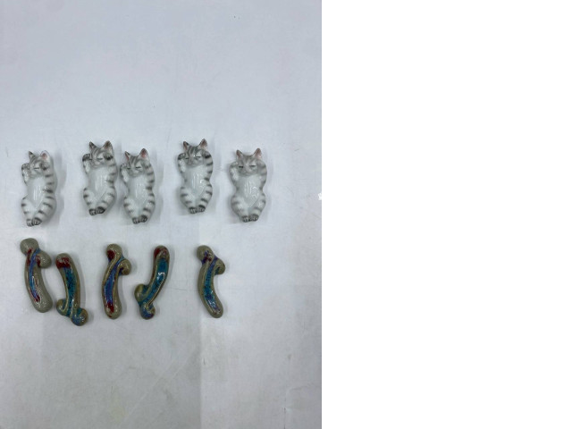 Set of 10 Glass coasters with cat and ocean wave designs.