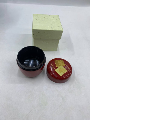 Japanese tea box made from cherry wood, featuring a Kabasai matcha pattern inside a wooden box.