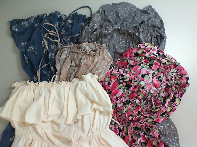 Set of 5 bright fabric overalls