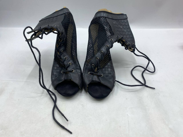 • Black mesh lace-up high heels