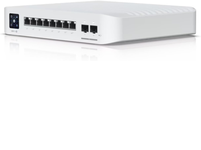 The Ubiquiti Professional 8 PoE is a robust switch designed for high-performance networking. It features eight Power over Ethernet (PoE) ports, allowing for seamless power and data transmission to connected devices such as IP cameras, access points, and more, all over a single Ethernet cable. With a compact, sleek design, the switch is equipped with a user-friendly interface and indicators that provide information on port status and connectivity. The device is built to handle demanding workloads efficiently, ensuring reliable performance in both residential and commercial environments. Its durable construction and advanced technology make it an ideal choice for enhancing network infrastructure.