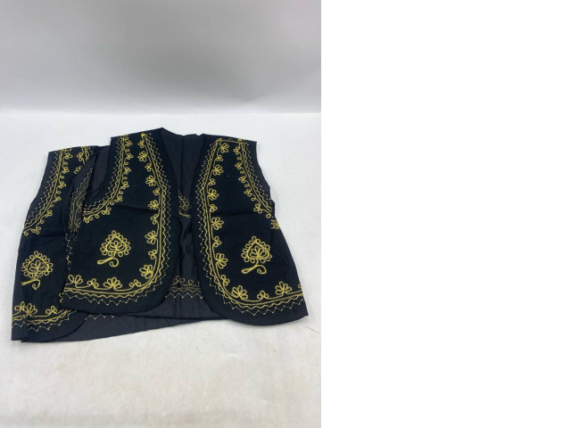 Set of 3 Afghan traditional men's black velvet waistcoat with heavy gold braided embroidery.