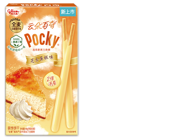 Pocky Cheese Cake is a delightful treat that combines the iconic Pocky biscuit sticks with the rich and creamy flavor of cheesecake. Each 48g pack contains thin, crunchy biscuit sticks coated in a smooth and sweet cheesecake-flavored coating. The product is perfect for snacking or sharing, and the packaging is designed to highlight the luscious taste experience. With its crisp texture and indulgent flavor, Pocky Cheese Cake offers a perfect balance of sweetness and savory notes, making it an ideal choice for dessert lovers.
