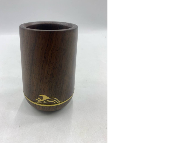 • This wooden cup is made from dark hardwood.