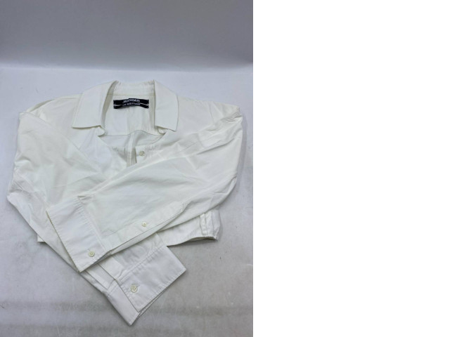 White cropped long-sleeved shirt.
