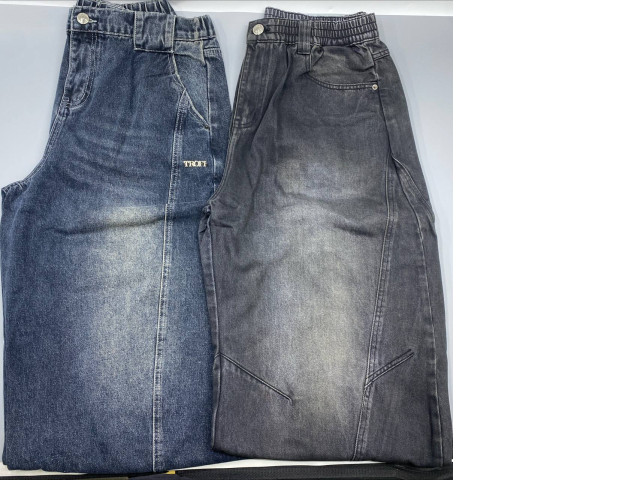 Set of 2 Men's loose-fitting jeans in dark blue and black, decorated with the word "TROFF".
