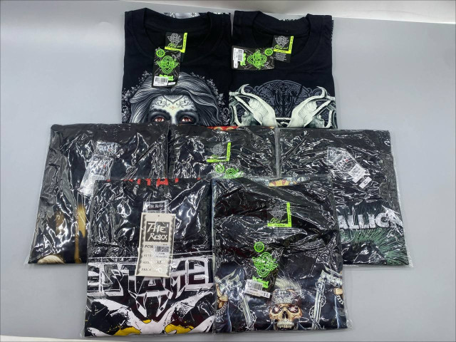 Set of 7 Black short-sleeved crew neck t-shirt with a pattern.